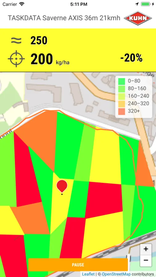 With KUHN EasyMaps, you can view your dose modulation map and your position on the plot directly on your smartphone or tablet. KUHN EasyMaps visually shows you the dose needed depending on your position on the plot, allowing you to manually adjust the settings on your machine.