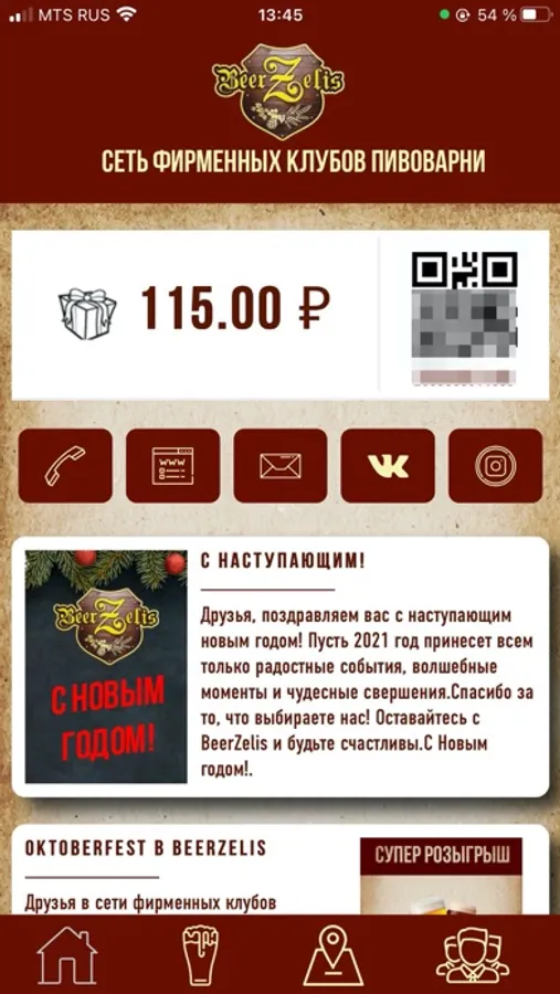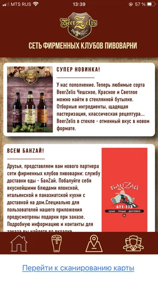Наше приложение обладает функционалом карты члена клуба фирменных магазинов BeerZelis, позволяющей получать проценты от покупок в виде баллов, накапливать их и оплачивать ими товары в нашей торговой сети.