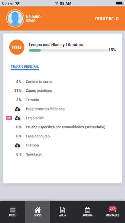 Primera versión de la aplicación de nuestro nuevo campus virtual.