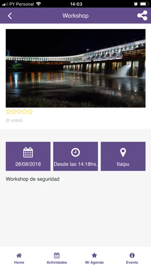 Aplicación Móvil para los participantes de los Eventos organizados por la Itaipu Binacional. El participante podrá encontrar informaciones sobre las actividades, expositores, agendar sus actividades.