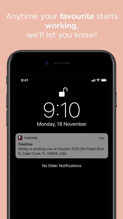 From a Staff Perspective – We all know that people who like you will tip you better. Our goal is to drive as much of that traffic as possible to you! As a staff user, you create a profile that is then reviewed by our administrators. Once your account is approved, whenever you go to work, simply select the location you will be working at and tap the red “Working Now” button. Customers looking for something to eat in your local area will be able to see you, and those that have favorited you will get a personalized push notification invitation that you are on!