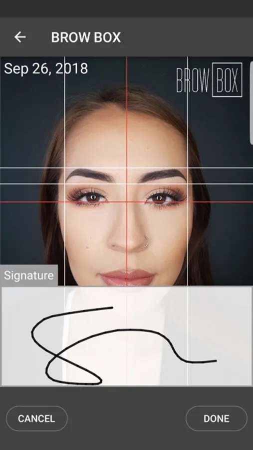Welcome to Browbox Grid! A tool specifically designed for cosmetic micropigmentation/microblading industry professionals. The movable grids aid with the visualization of eyebrow symmetry. The app is also here to aid the artist with the process of the shape determination signoff. Once the design is approved upon by client and artist, the artist can get the client to sign the approval of shape in the app prior to proceeding with the procedure. With two options, the artist can choose to have the signed design with or without the grid lines.