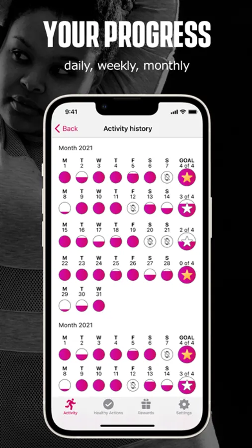 • Earn rewards for hitting daily active calorie goals.