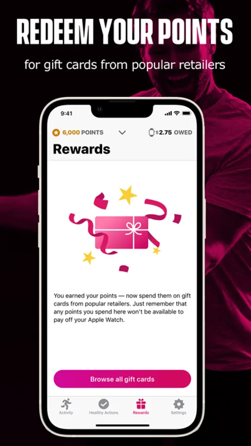 Hit your activity goals and complete healthy actions to earn points. Activity goals are based on your weight and sex. Some healthy actions are based on your personal health history. Meet your weekly activity goals and complete healthy actions to earn enough points each month to cover your Apple Watch payment (if eligible). Or use your points to get gift cards from popular retailers. Find out which rewards you’re eligible for by downloading and logging in to Attain.