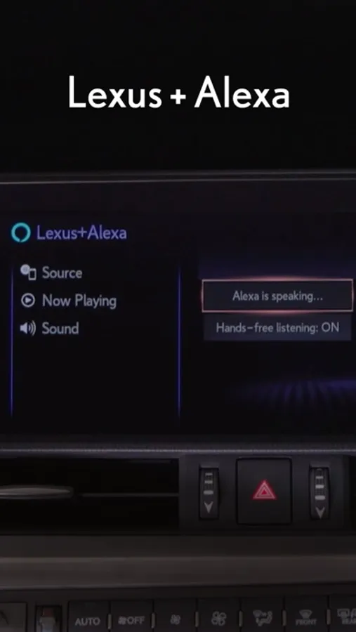 To access Alexa on your compatible Lexus vehicle, installation of the Lexus app and the Lexus+Alexa app on your compatible smartphone is required.