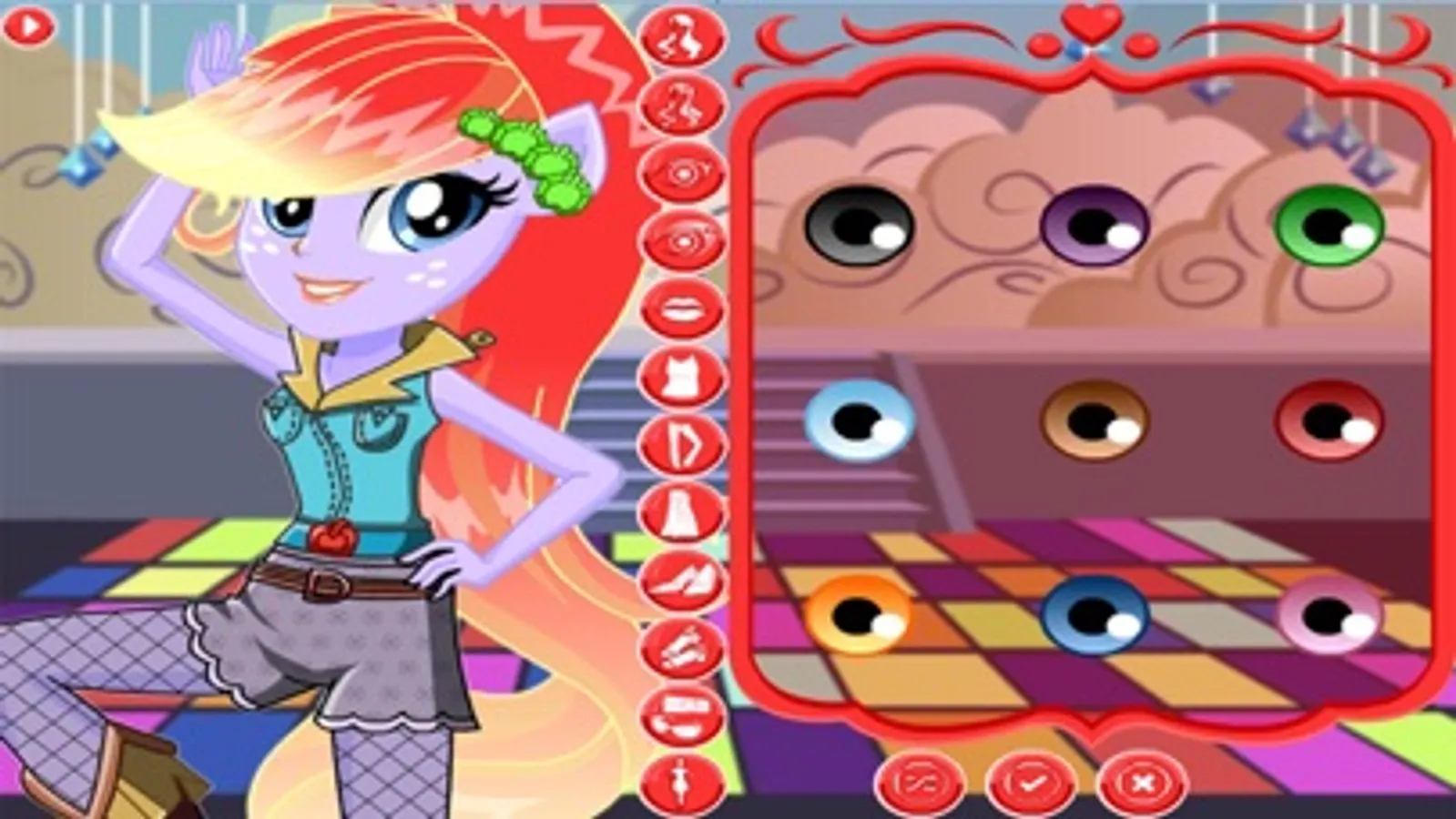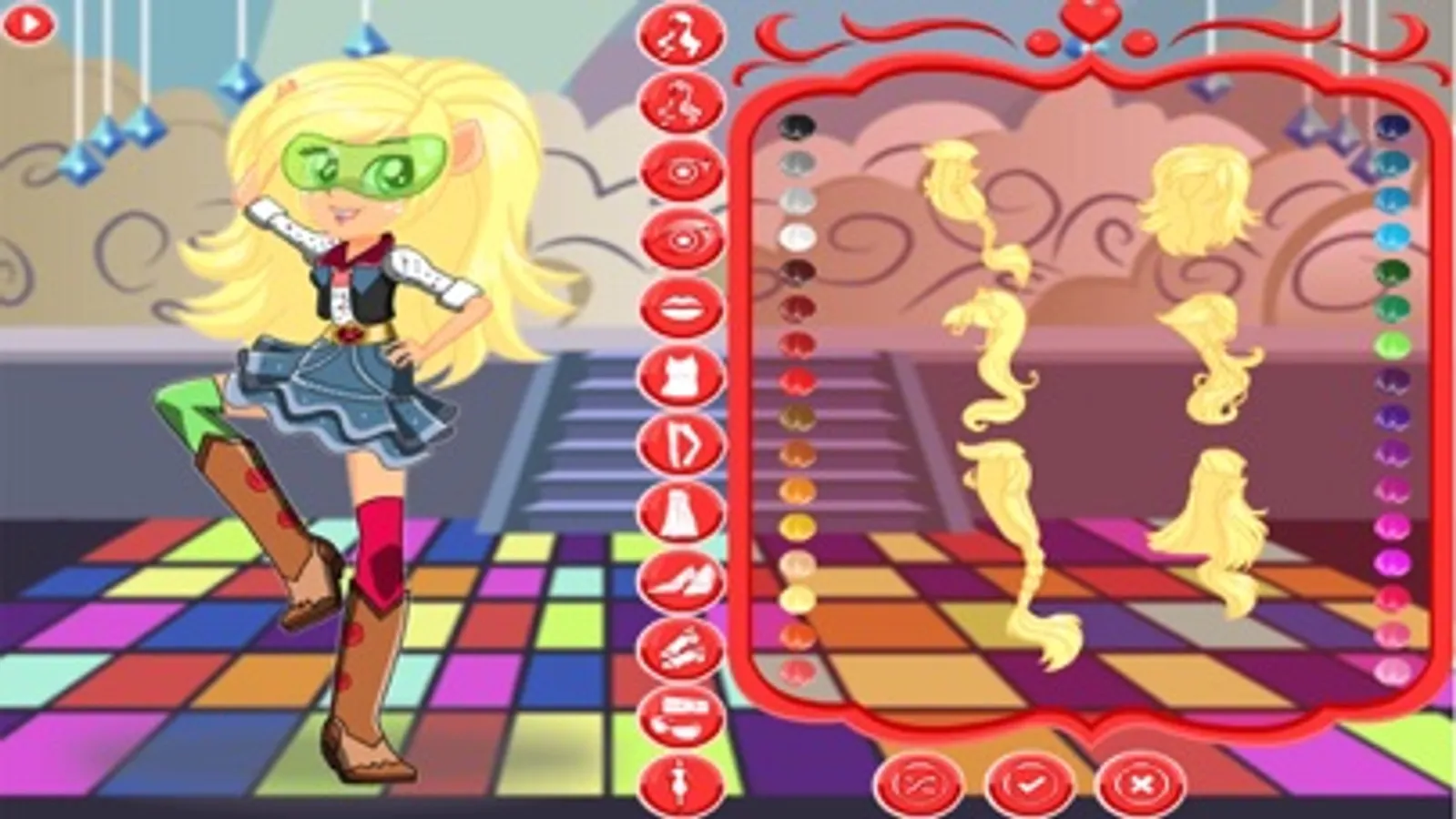 This ponies game dress up believes in playing an honest game! the friendship girls games have begun, and the wondercolts are ready to rumble! pony dress up is one of them, and for her, friendship comes first! Her outfit and snazzy shoes will put her ahead of the competition, and she's got a fabulous necklace that really shows her school spirit!