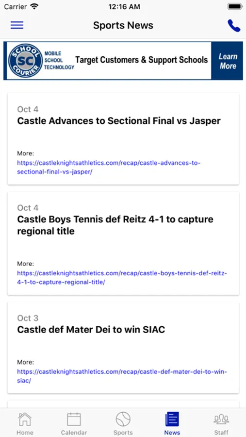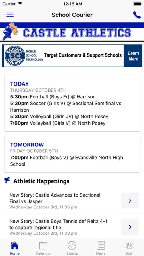 The Castle Knights Athletics app for iPhone, iPod, and iPad allows student, faculty, parents, and the community keep up-to-date with athletic communication. Castle High School is located in Newburgh, Indiana, USA. Go Knights!