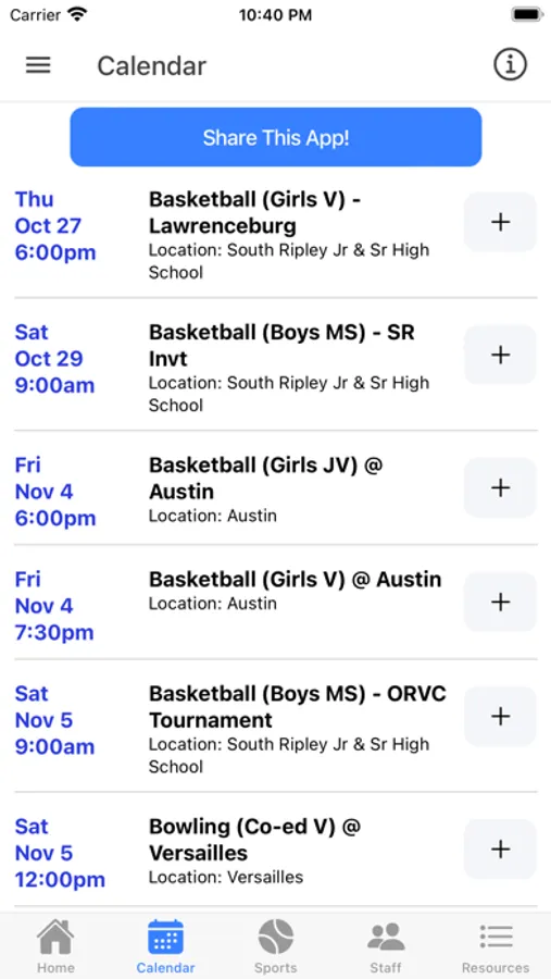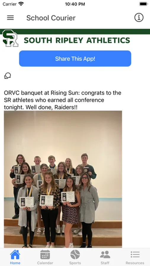The South Ripley Athletics app for iPhone, iPod, and iPad allows student, faculty, parents, and the community keep up-to-date with athletic communication.