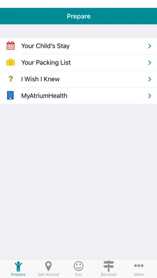 - Navigation: Parking and local lodging options, as well as a link to the Atrium Health Directions app, which provides turn-by-turn directions within Levine Children’s Hospital