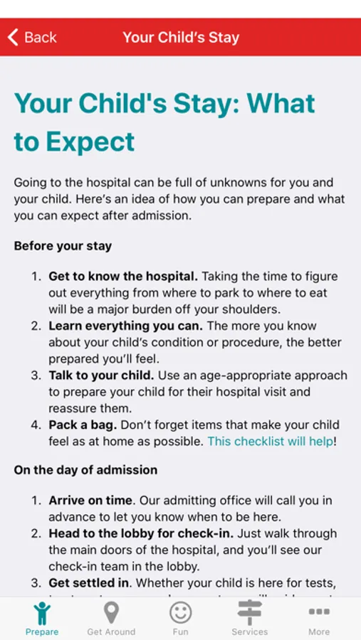 Help and support from Levine Children’s Hospital is available. Our app helps patients and their families prepare for their visit, and make their stay more comfortable.