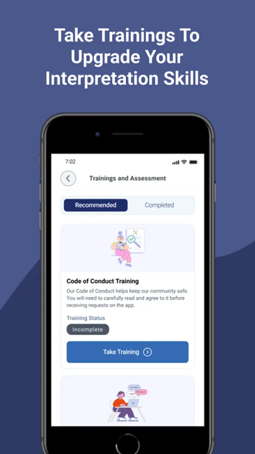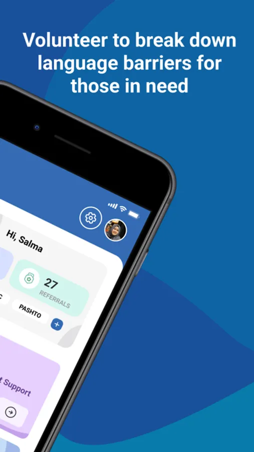 1 - Bilinguals sign up and get notified whenever a refugee needs a translator. If they're available, they'll click yes to the notification. Once connected in a live session they can exchange text messages, pictures, voice messages, and get on an internet phone call. High performing volunteers can receive a certificate or recommendation letter for their time spent volunteering on the app.