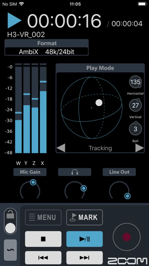 H3 Control is an app that enables wireless control of the ZOOM H3-VR.