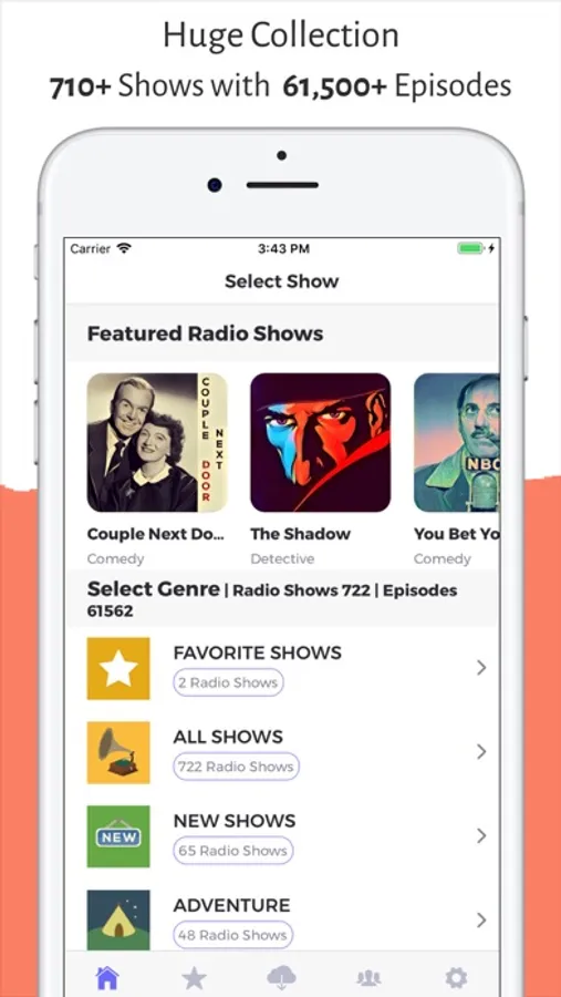 → This app let you access 720+ shows of Old time classical radio shows (OTR) with 61,800+ episodes and 1,850,000+ minutes of playback time