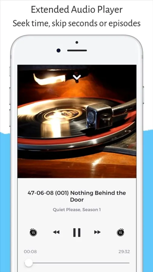 → Extended audio player features all the required controls. Time seeking to move anywhere in episode