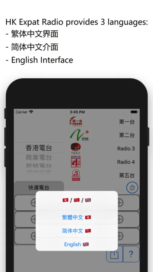 - 從香港、澳門、廣東、美加、澳紐和馬來西亞搜羅70多個電台