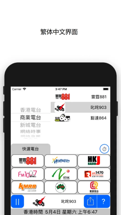 - 快選列讓您能更快捷、更方便的選擇歡喜的電台