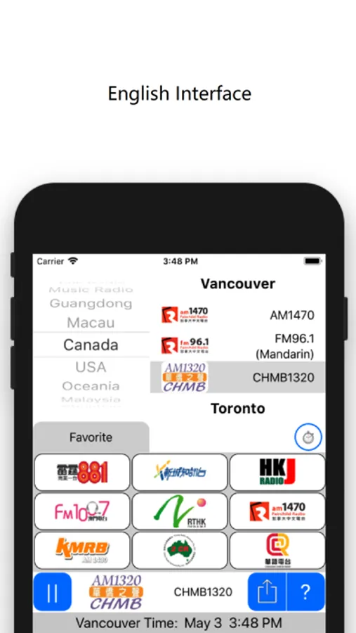 - 从香港、澳门、广东、美加、澳纽和马来西亚搜罗70多个电台