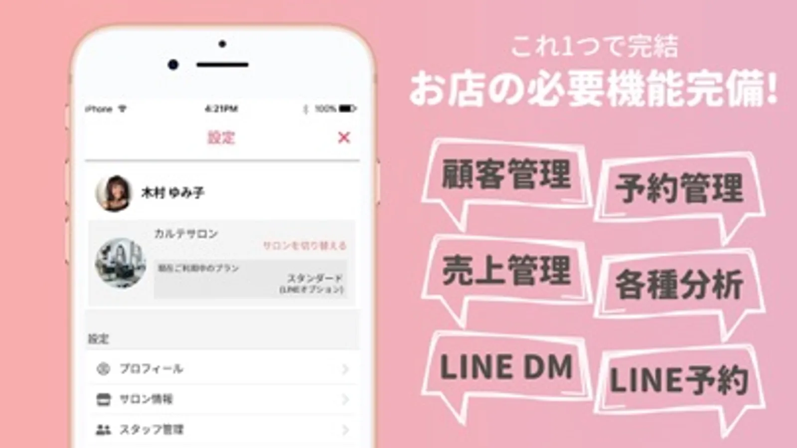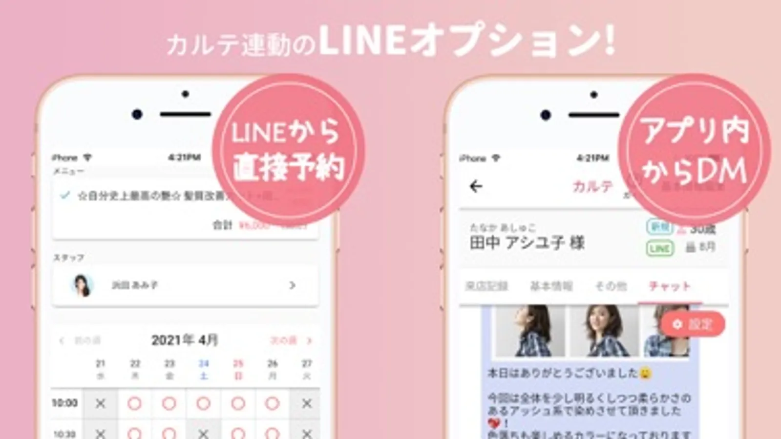 ・お店の公式LINEと連携することで、お客様とメッセージのやりとりや予約の受付が可能