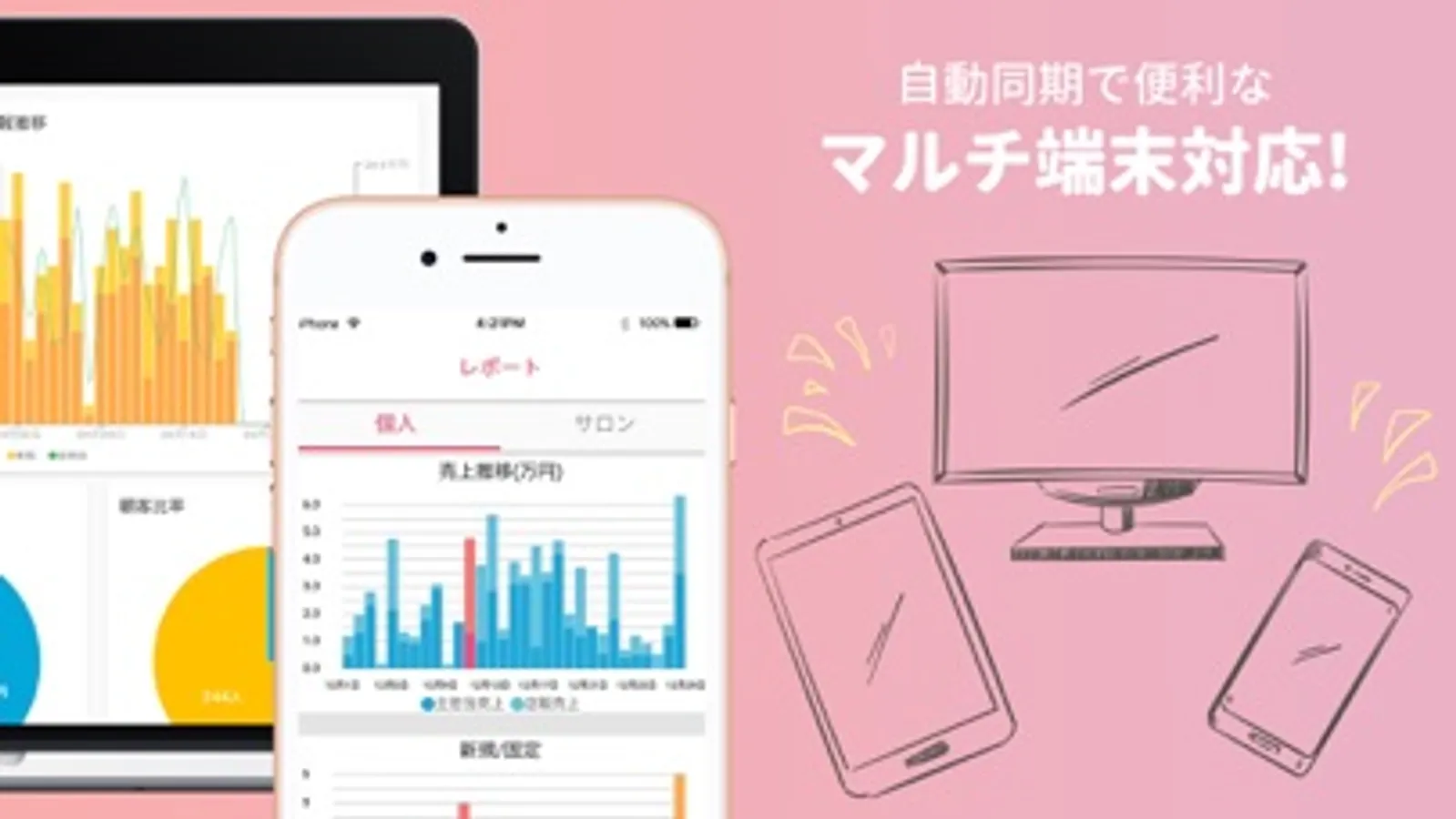 ・複数スタッフでの同時操作。スマホ/PCで同期してご利用