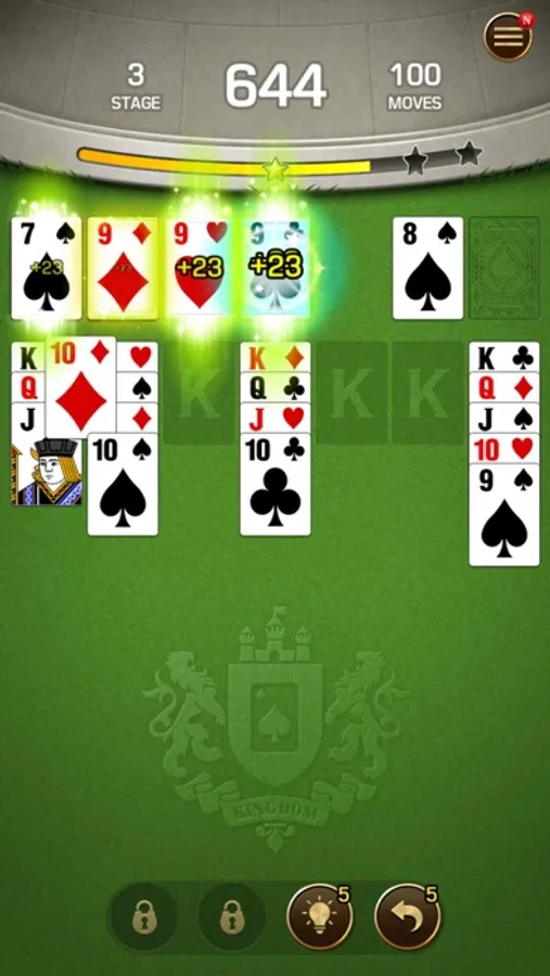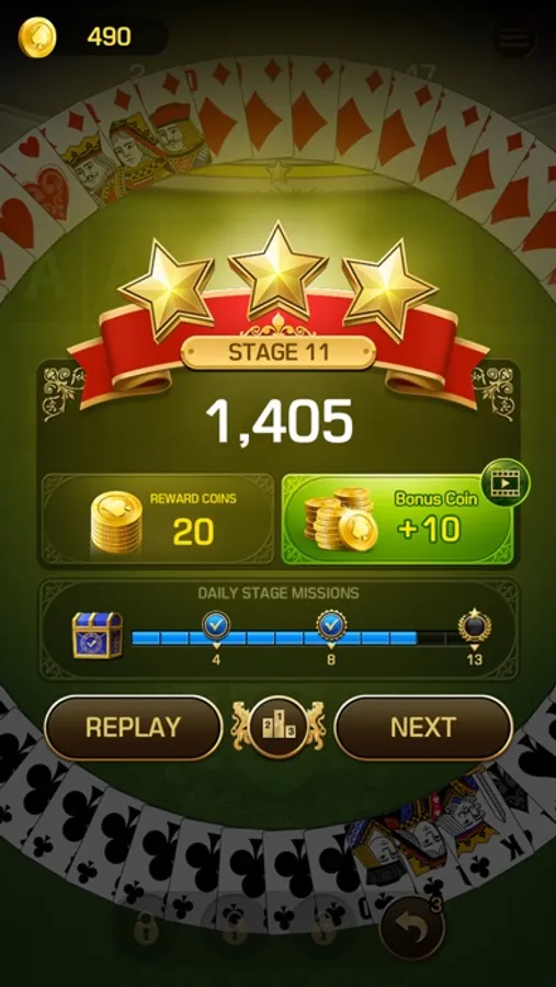 This game is based on a classic card game known as "Patience". Players use the trump cards to place the same shape (Diamond, Heart, Spade, Clover) from the ACE card symbolizing the number 1 to JACK, QUEEN and KING. When clicking the card deck, hidden cards are given to players. Players should place cards right in order to complete the stage.