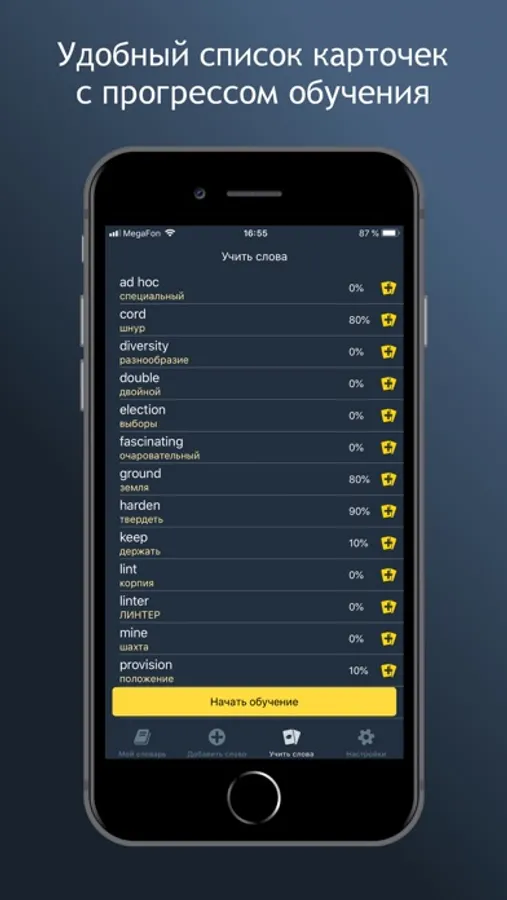 Простое и удобное приложение для запоминания английских слов — составляйте собственный словарь и учите новые слова по карточкам.