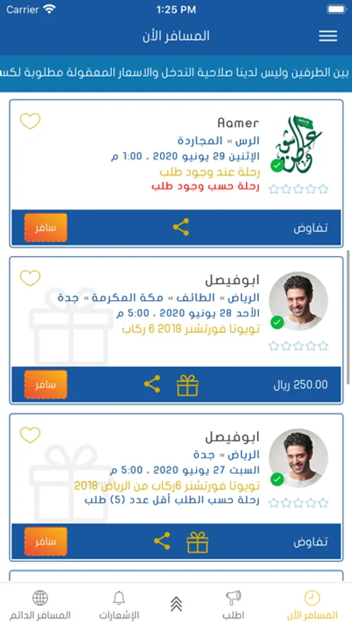 كل المسافرين بين المدن الداخلية والدولية داخل التطبيق أطلب أو وصل في أسرع وقت .