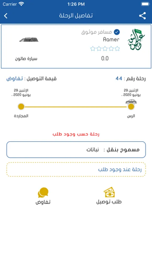 عزيزي الزائر هذا التطبيق مجاني لا يتحصل التطبيق على رسوم من العميل او من المسافر.