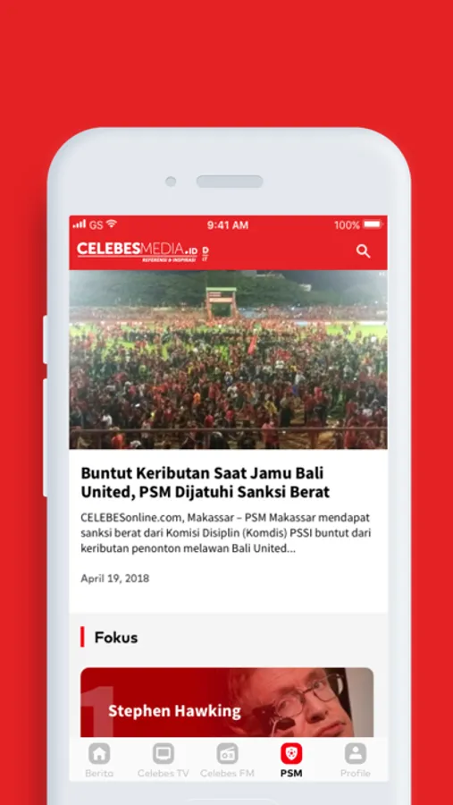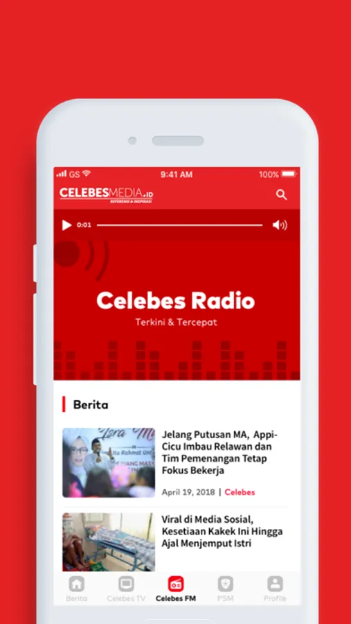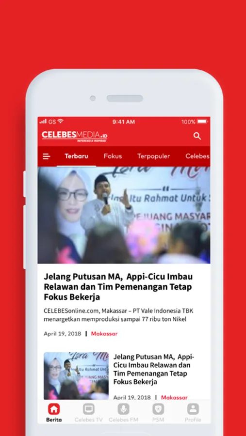 With new design, you can explore various news categories easily and quickly, just Tap or Swipe news categories you want to read. You can also enjoy Free Live Broadcast Celebes TV and Celebes Radio FM.