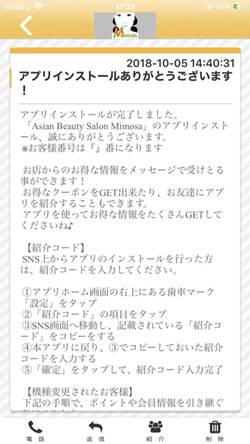 MimosaのアプリをSNSを通じてお友達に紹介する事ができます。