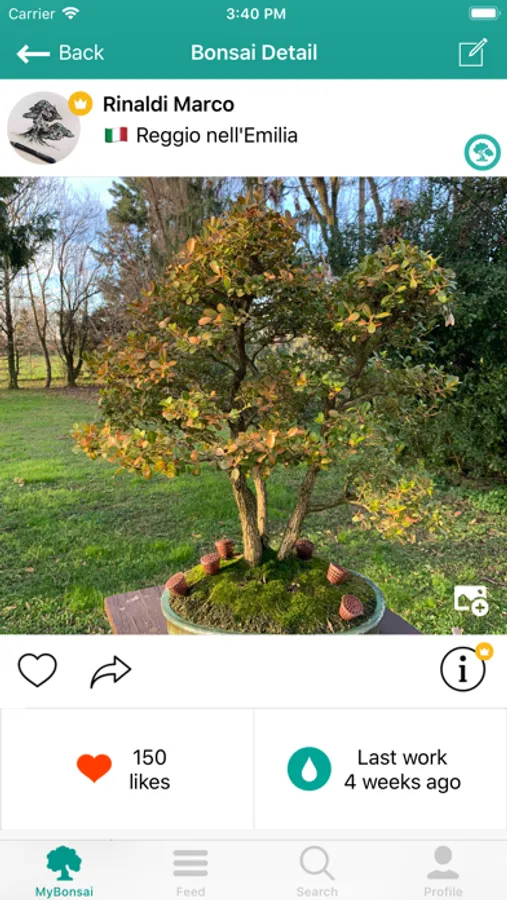 • Keep Track of Bonsai Masters: know who is posting last bonsai and what they’re doing with their last works, see top works of the period.