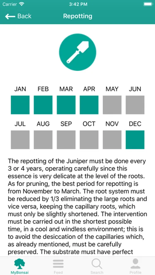 • Bonsai Information: you will be able to discover all the common and specific characteristics of your bonsai. BonsaiDo will suggest you the recommended works depending on the bonsai species. You always will know when you have to make the next Work!