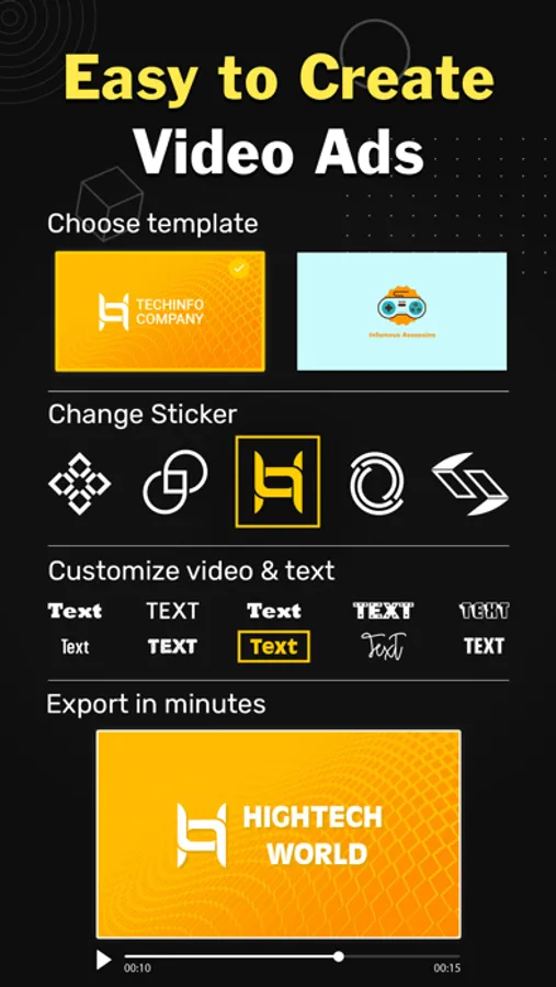 You don't need to hire a graphic designer to create a professional video for your products or services. Try our video ad maker app, choose from many product marketing ad designs and create advertisements.