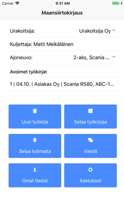 Maansiirtokirjaus.fi ohjelmisto on maarakentajien käyttöön suunniteltu ohjelmisto. Se koostuu tietokoneella käytettävästä hallinnointityökalusta sekä työmaalla käytettävästä mobiiliaplikaatiosta. Ohjelmiston avulla luot työmääräyksiä, kuormakirjoja, otat kuormakirjoihin hyväksynnän asiakkaalta, luot raportit työkohteittain tai vaikkapa ajoneuvoittain. Lisäksi ohjelmisto sisältää kommunikointiväylän kentän ja varikon tai toimiston välille.