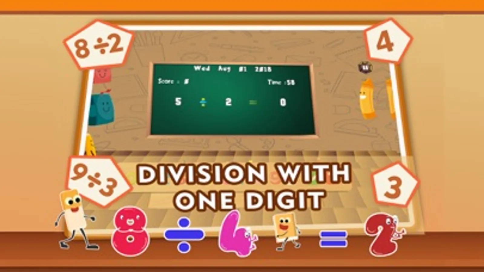 Find a fun and enjoyable way of teaching your kids division via division App. It is different from various division apps in the market. Division for kids app will make it easier for kids learn how to do division in the most easy and fun way. This kids division app includes a lot of learning division activities that will teach them how to divide numbers, memorize division rules and practice their math skills.