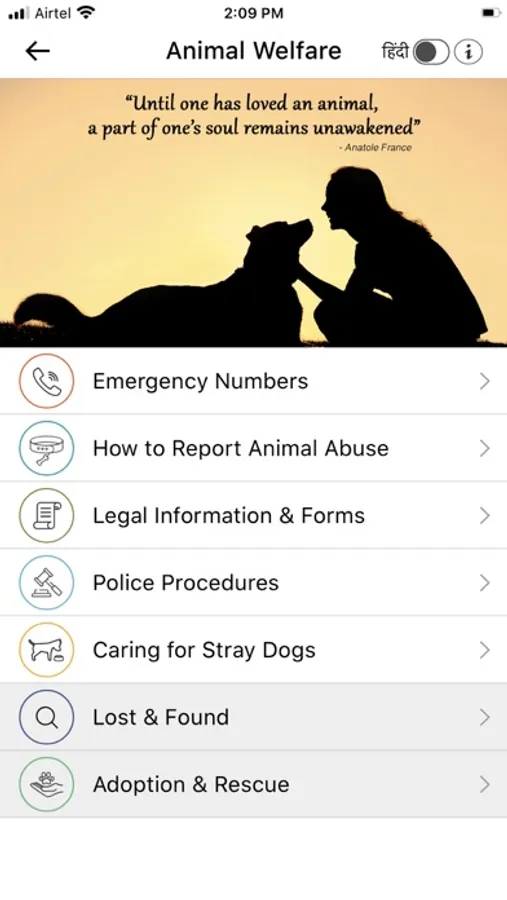 From Emergency Numbers to a detailed structure of How to Report Animal Abuse, this section is one of the key features of the app. It also helps a layman understand about laws, police procedures and formalities