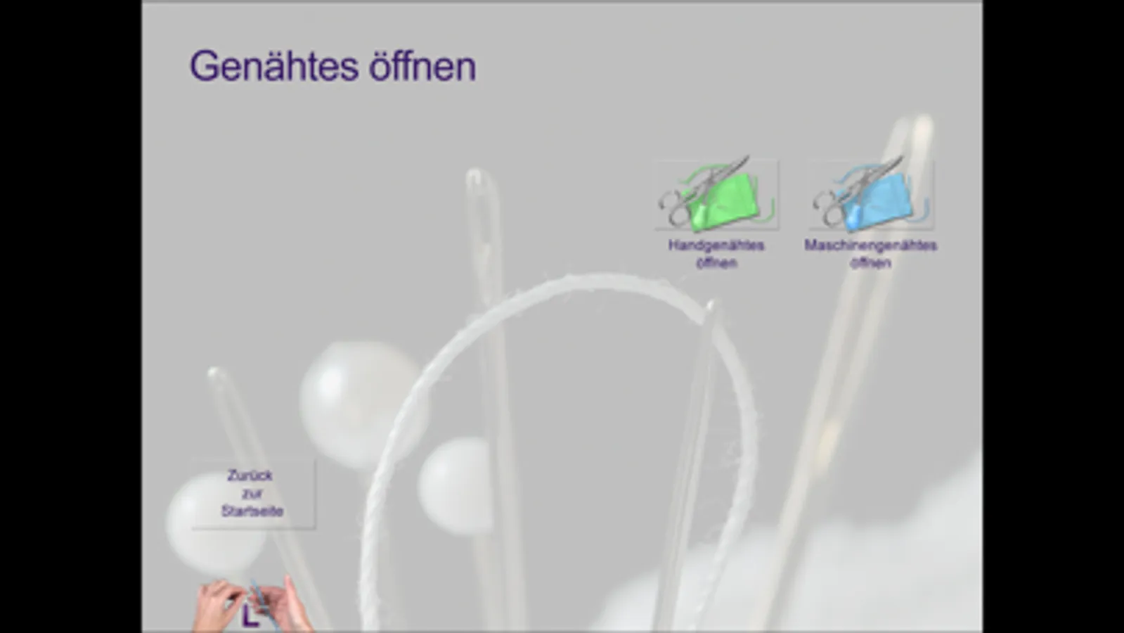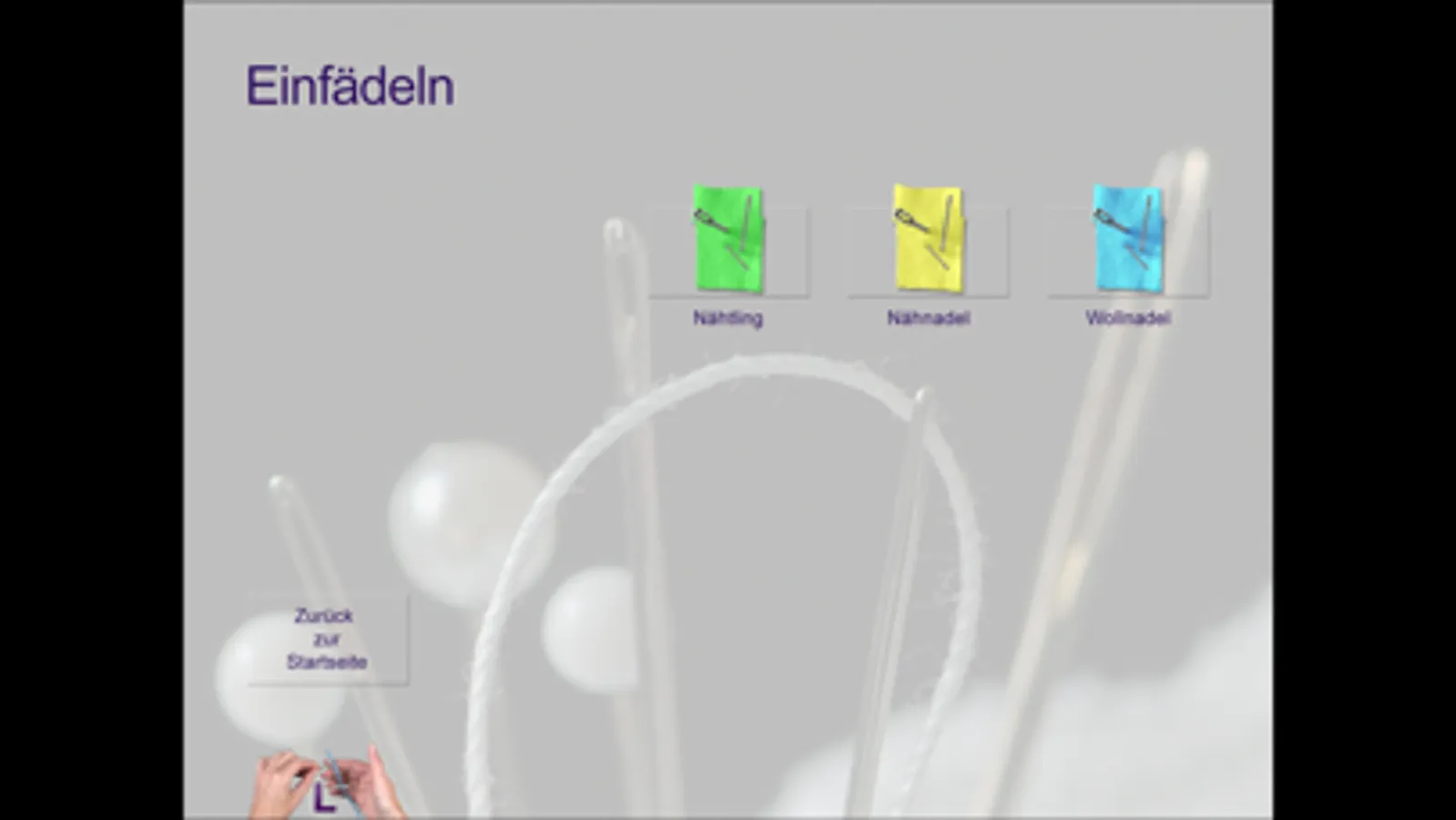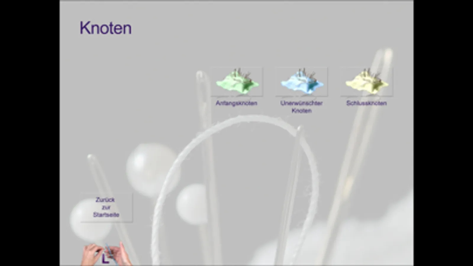 Beim Kapitel «Stiche» verfügen die Filme zusätzlich – mit einem Klick auf den Stecknadelkopf – über separat anwählbare Dia-Shows mit Anwendungsbeispielen.