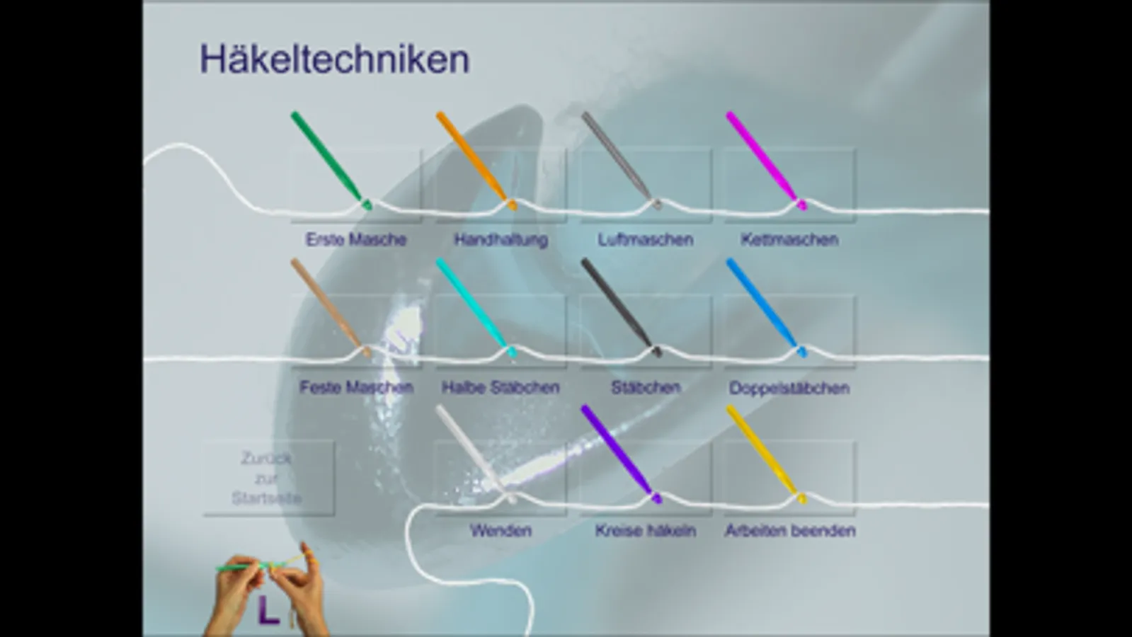 26 Lehrfilme zum Thema «Häkeln Grundkenntnisse», Häkel-Techniken von der ersten bis zur letzten Masche und dem Vernähen. Neben den Häkel-Techniken werden auch die Gestaltung unterschiedlicher Häkelflächen und die Häkelschrift gezeigt.