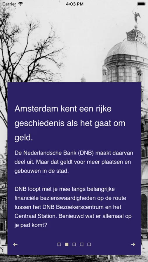 Wandel door de financiële geschiedenis van Amsterdam. Ontmoet bijzondere plekken op de route tussen het Centraal Station en het DNB Bezoekerscentrum. Benieuwd wat er allemaal op je pad komt? Met De Nederlandsche Bank loopt het geld met je mee. Meer….