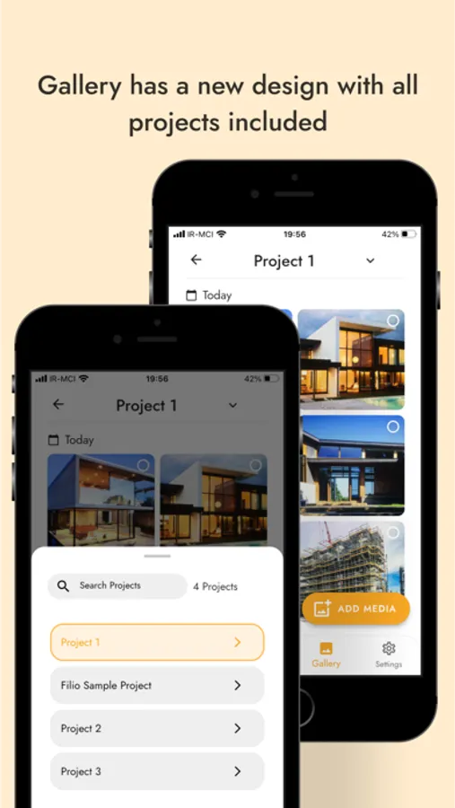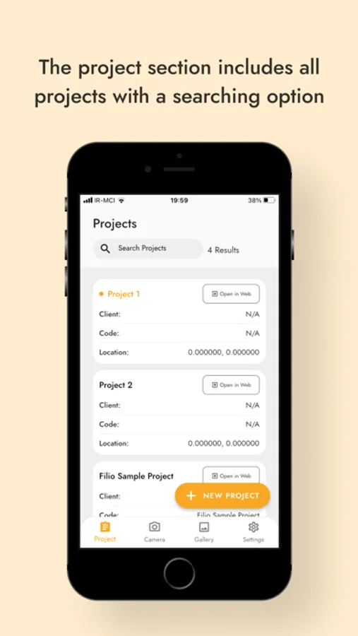 2) Start taking photos and videos for the sample project automatically created by Filio.