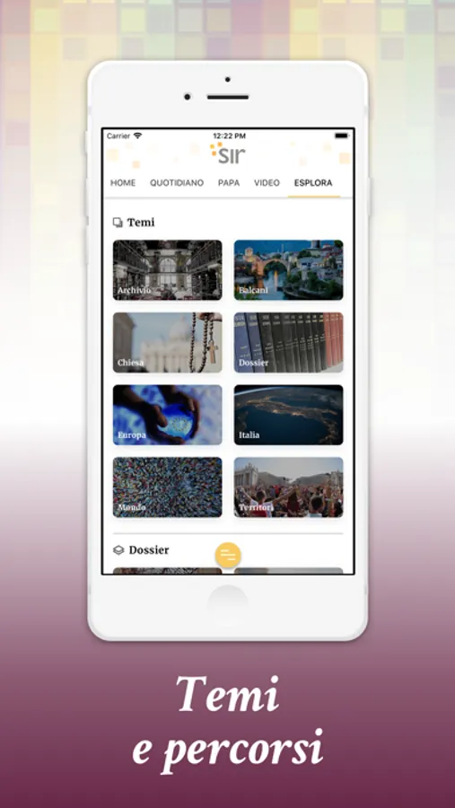 Se si è interessati ad alcuni temi specifici, è possibile navigare nelle sezioni “Papa” o “Esplora”, quest’ultima a sua volta suddivisa in diverse categorie: Balcani, Chiesa, Europa, Mondo, Territori, … che si possono aggiungere tra i “Preferiti”, ricevendo così tutti gli aggiornamenti ad esse correlati.
