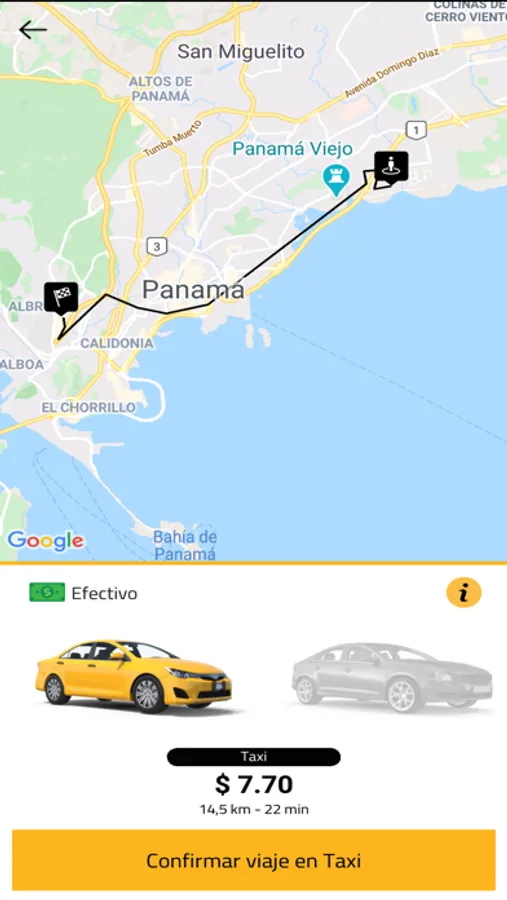 Podrás tener una referencia de distancia, tiempo y costo aproximado de tu viaje antes de solicitar el servicio.