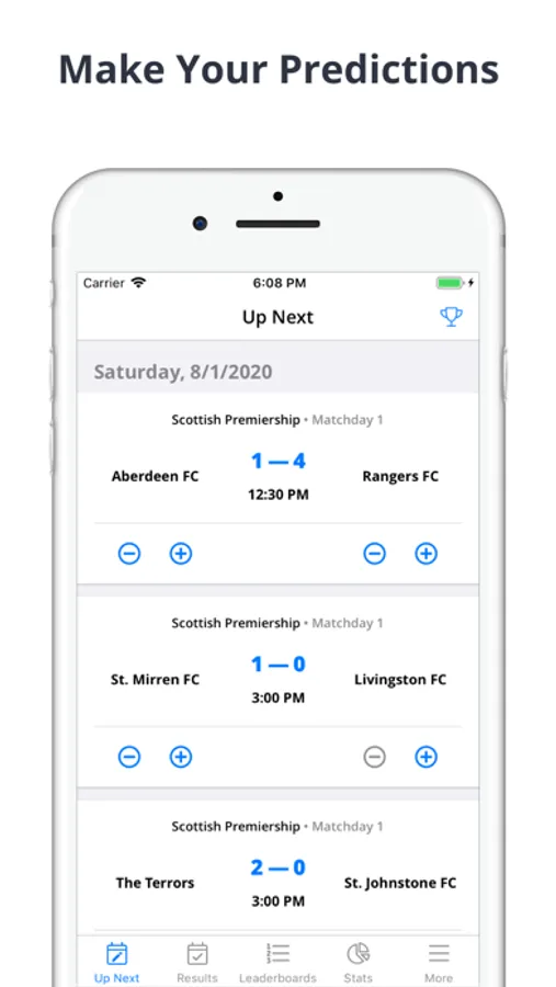 Predictions can be changed up until the scheduled kick-off time of the match in question. Once the match in question begins, you will not be able to edit your prediction.