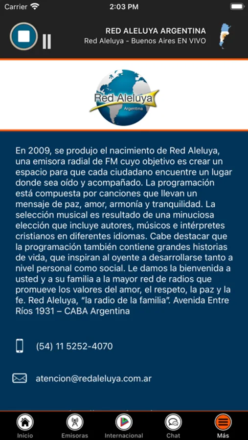 "En 2009, se produjo el nacimiento de Red Aleluya. Una extensión de la reconocida emisora radial “Rede Aleluia” existente en todo el territorio de Brasil, con una propuesta única, ser “la radio de la familia”.