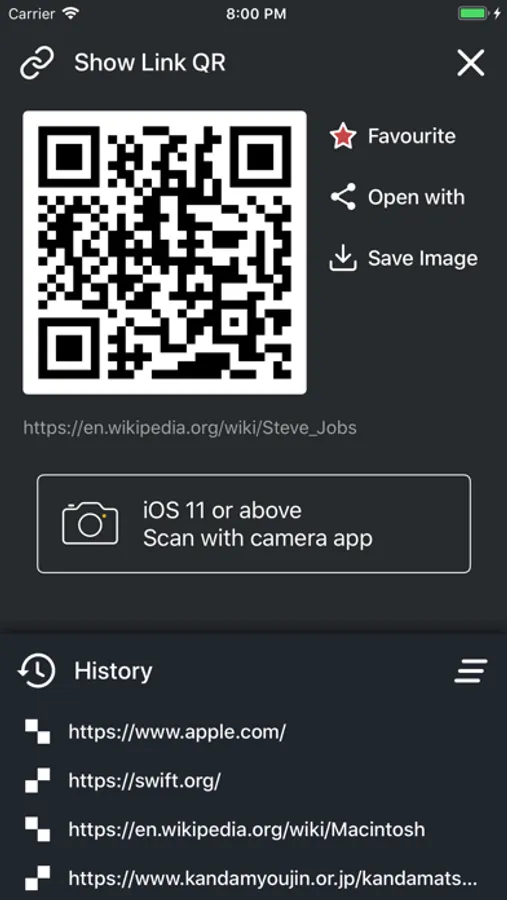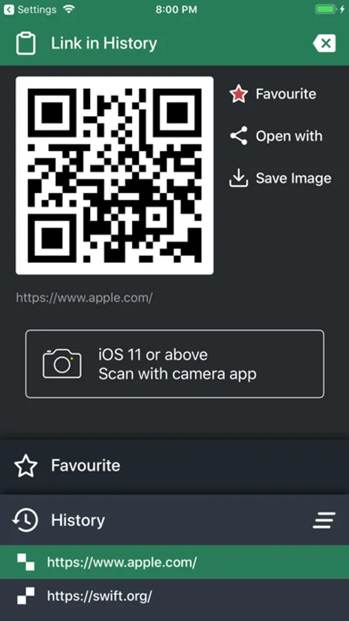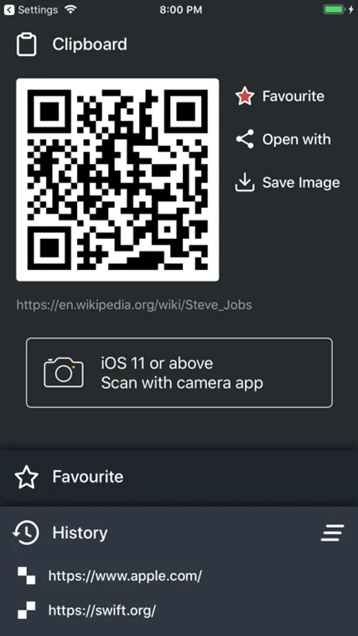 - Add QR codes to favorites and show them at any time from the widget or watch.
