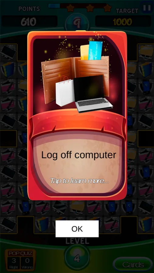 Play this fun match 3 game and Learn how to protect your personally identifiable information “PII” in your office from hackers and theft. Collect protection cards to fend off hackers by matching 4 of the same game items. Whether online, emails or social media, our PII is vulnerable to attack. Answer quiz questions and compete for the best scores to receive a certificate of completion. Play 100 fun, entertaining and educational levels for free. Hours of fun.
