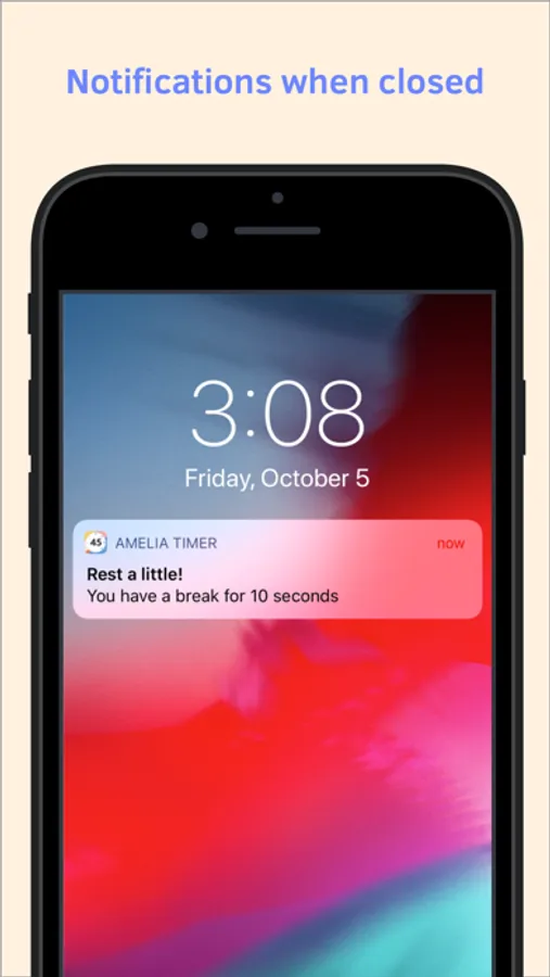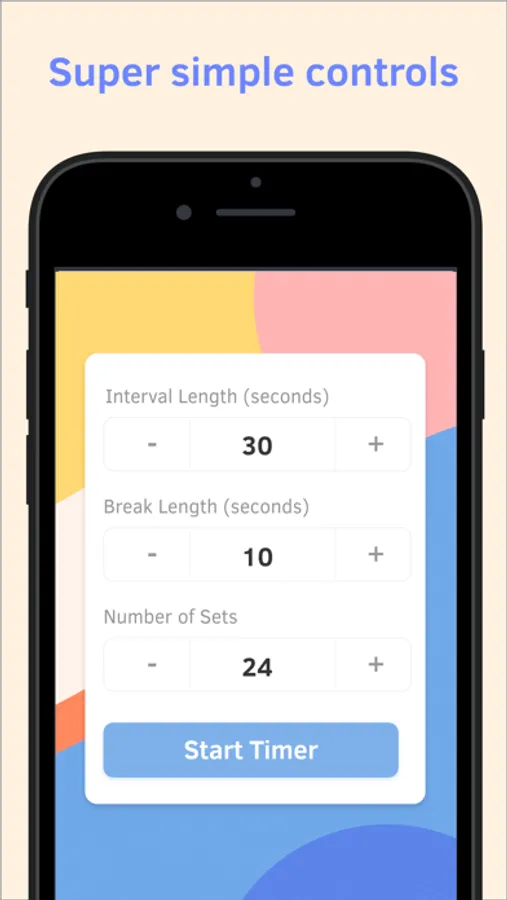 Simple, beautiful and completely free interval timer. Just a couple taps to set your interval length, break length, and number of sets. No ads, no bloat, just a simple periodic timer.