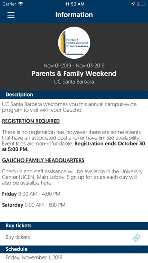 UC Santa Barbara Events Screenshots