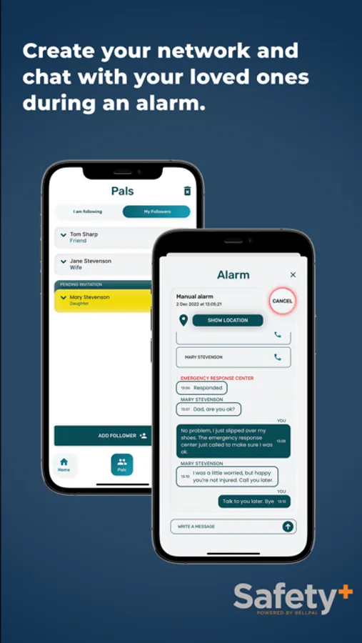 If you use the app as a contact, you will receive a notification when the watch user automatically or manually sends an alarm.