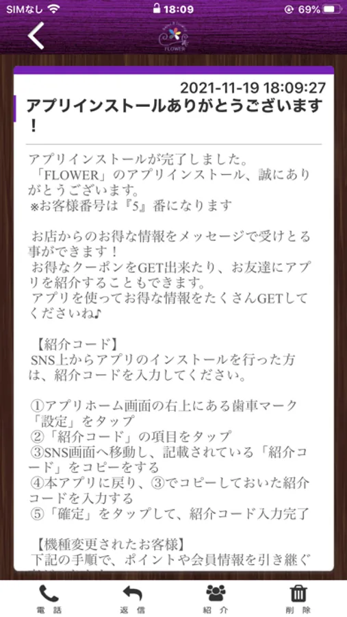 FLOWERのアプリをSNSを通じてお友達に紹介する事ができます。