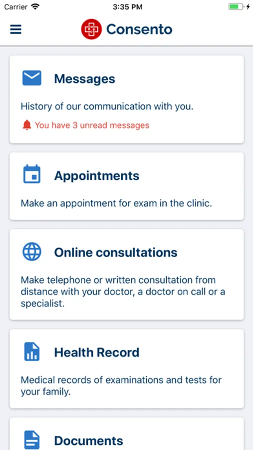 • Notifications of upcoming appointments or uploaded documents in your dossier